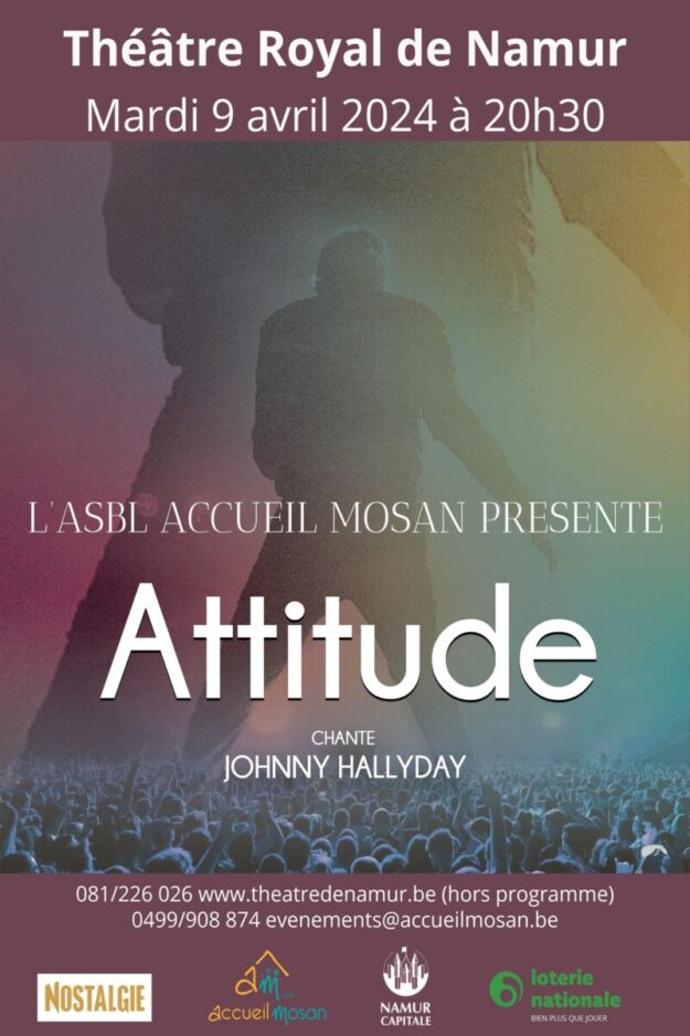 Attitude chante Johnny Hallyday – Un show 100% LIVE Les musiciens du groupe Attitude revisitent le répertoire mythique de la star du Rock français Johnny Hallyday. Grâce au timbre de voix étonnamment proche de son chanteur, Jacques Weck, ainsi qu’aux musiciens chevronnés qui l’entourent, Attitude sur scène restitue durant 1h 45 l’ambiance brûlante des concerts…